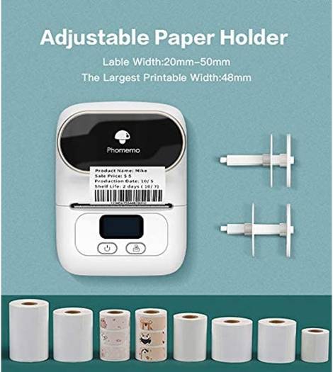 Easily Label Printing- Phomemo-M110 Mini Bluetooth wireless thermal mobile label printer, connect your mobile phone easily. There are a lot of templates in APP, you can easily print any label you need, clothing labels, price labels, cable labels, jewelry labels, address labels, folder labels, and so on. Phomemo-M110 Label width range of is 20mm~50mm, the largest printable width is 48mm. Not for shipping labels. Technology support via email, live chat. Powerful Function- OCR-Optical Character Recognition, there is OCR function in the App, if you have this mini label maker, you can enjoy converting the text in the photos directly into editable text. Make you the coolest label printer! Save Money and Time- Thermal printer -thermal printing technology eliminates the need for expensive ink or toner, once edited on the phone, the label will be printed immediately. Only print black and white. Convenience- Mini compact design, you can bring this mini printer to anywhere you want Including the plane. There is rechargeable 1500mAh battery in it, full charge has 1 week standby time. Customer First, Services Foremost- We strongly stand behind the great useful of this thermal label maker. After-sale warranty, we sup