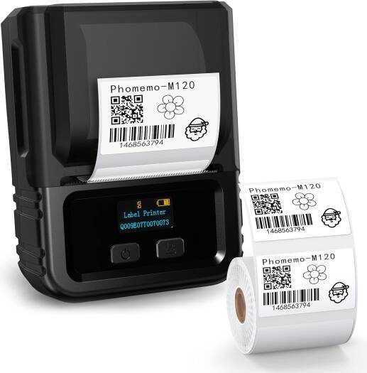 Phomemo M120 Label Maker- Barcode Printer Bluetooth Thermal Label Maker Machine 2 Inch 50mm Barcode Label Printer for Retail, QR Code, Small Business,