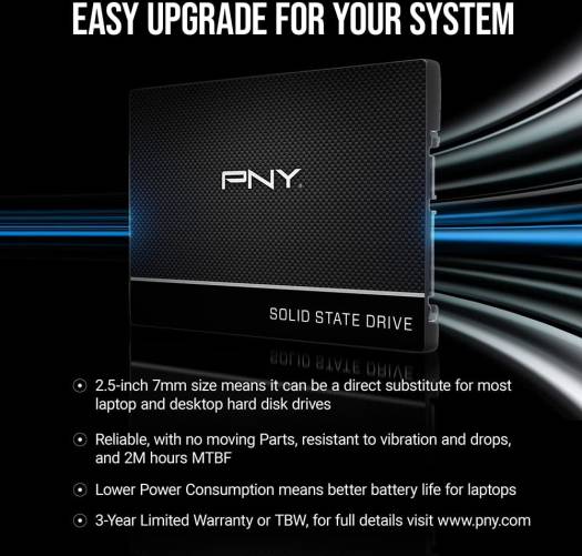 PNY CS900 1TB 3D NAND 2.5″ SATA III Internal Solid State Drive (SSD) – (SSD7CS900-1TB-RB)