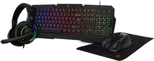 Take your gaming setup to the next level with the Ultimate RGB Gaming Combo. This all-in-one package gives you the tools you need to excel in any game. The membrane gaming keyboard is built to last with a 10 million keystroke lifespan and features responsive keys and 8 customizable buttons, perfect for fast, accurate gameplay. The Arabic keys provide localized support, and the keyboard connects easily via USB with a 1.5M PVC cable for hassle-free use. Whether you're on Windows or Linux, this keyboard has you covered. The included mouse offers an impressive DPI range from 800 to 7200, allowing you to adjust sensitivity to suit any situation. With six DPI levels and 13 vivid RGB lighting modes, this mouse doesnt just perform wellit looks great, too. The comfortable design and 1.5M cable make it perfect for long gaming sessions where every second counts. Rounding out the combo is a high-quality gaming headset. The 40mm drivers deliver immersive sound, while the omni-directional microphone ensures your voice is heard clearly. With dual 3.5mm jacks and a USB connection for RGB lighting, this headset is ready to plug in and go. Its 2.1M cable provides plenty of room to move, and the combination of fabric and rubber construction means you can game comfortably for hours. Finally, the extended 250 x 350 x 3mm mousepad ensures smooth and accurate tracking. Made from durable fabric and rubber, it provides the perfect surface for your new mouse, ensuring youre always in control. With