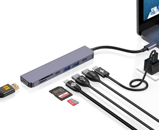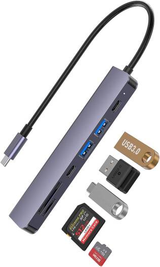 Porodo 7 In 1 Hub HDMI 2XUSB-A 2XUSB-C SD MicroSD is what you exactly need! It transfers data with high-speed micro SD and SD card readers. USB-A 2.0 and USB-C ports ensure swift data transmission up to 480Mbps, while USB-A 3.0 takes it a notch higher with speeds of up to 5Gbps. Type-C PD port supports power inputs of up to 100W, offering efficient charging. Integrate your multimedia experience with hub's HDMI output, delivering 4K resolution at 30Hz.This hub is a perfect choice for efficient data management and multimedia connectivity.