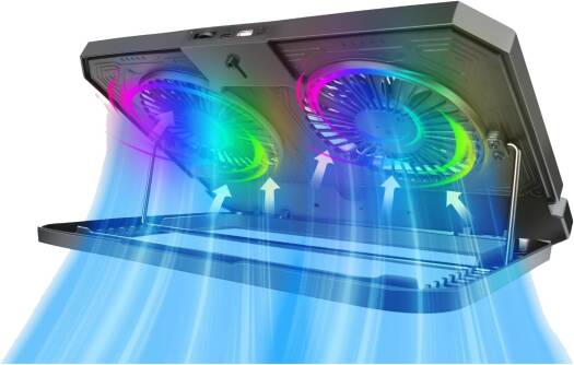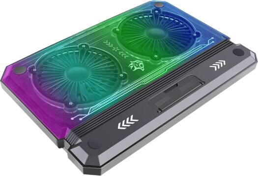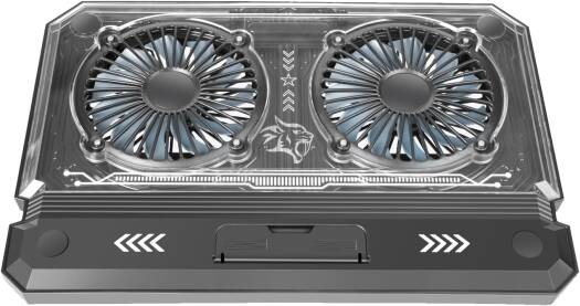 Porodo Gaming Crystal Shell Laptop Cooling Pad With Phone Holder, Dual High-Speed Fans, 8-Level Adjustable Height, RGB Lighting, Anti-Slip Base, USB-A