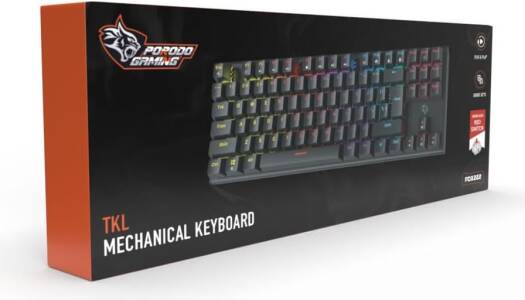 Porodo Gaming Mechanical Keyboard with Suspending Keycaps, TKL 87 Keys US & Arabic, Smooth Clicks, Plug & Play, Red Switch, Anti-Ghosting, 12 Light Modes RGB, 50 Million Clicks Lifespan (Black)