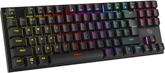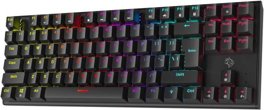 Get ready to take your gaming to the next level with the Porodo Gaming Mechanical Keyboard. This keyboard is designed for gamers who demand precision, speed, and durability in every keystroke. Whether youre a casual gamer or a pro, this keyboard has everything you need to enhance your gameplay and make your experience more enjoyable. It provides a satisfying tactile feel. The keys are slightly elevated, which not only looks cool but also makes them easier to clean. Dust and crumbs wont get stuck between the keys, ensuring your keyboard stays clean and responsive. This keyboard features a Tenkeyless (TKL) design, which means it has 87 keys. Its compact, saving you desk space while still providing all the essential keys for gaming. The TKL design is perfect for gamers who prefer a more portable setup or want to keep their desk clutter-free. comes with both US and Arabic key layouts, making it versatile and convenient for bilingual users. Enjoy smooth, responsive keystrokes with the red switches on this mechanical keyboard. Red switches are known for their linear action, which means each keypress feels light and effortless. No need to worry about complicated installations or software downloads. You can simply connect it to your computer, and its ready to use right away. Whether youre on a PC or a laptop, this keyboard will work seamlessly. It is equipped with anti-ghosting technology, which means it can register multiple key presses at once without any input errors. Customize