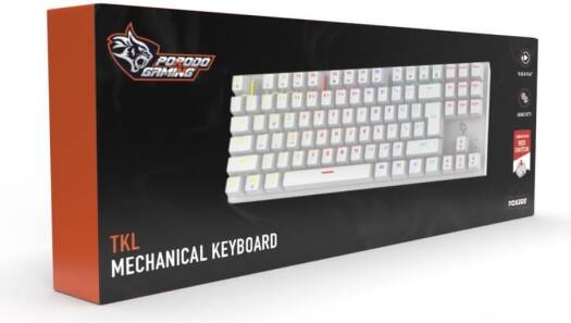 Porodo Gaming Mechanical Keyboard with Suspending Keycaps, TKL 87 Keys US & Arabic, Smooth Clicks, Plug & Play, Red Switch, Anti-Ghosting, 12 Light Modes RGB, 50 Million Clicks Lifespan (White)