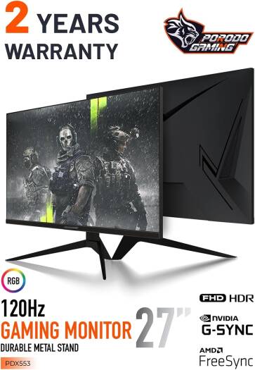 Porodo Gaming Monitor, 27″ Inch 120Hz FHD CSOT LED Display, 5.5 MS Overdrive Function Response Time, Metal Stand, RGB Lighting, Borderless Design, 16.7M Display Colors, UK Plug, Black | PDX553