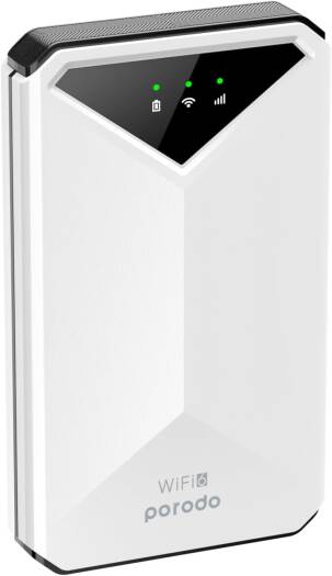 Porodo portable MiFi 3G/4G Router CAT4 V2 without Dispaly Download Speed FDD LTE Cat4 150mbps / TDD LTE Cat4 130mbps Upload Speed FDD LTE 50mbps /TDD LTE 35mbps white