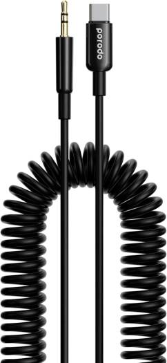 Porodo Type C to AUX Coil Cable 1.2M, Auto-Retract, Universal Compatibility, Convenient Tangle Free Design – Black