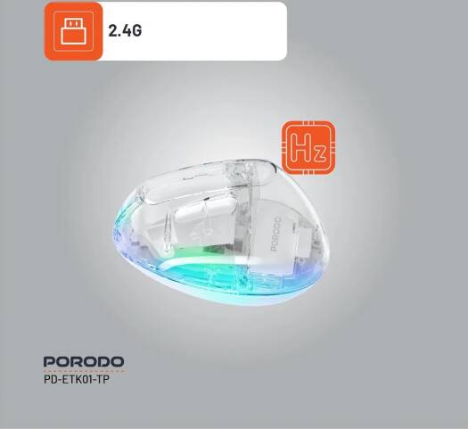 Porodo Vertical Wireless Mouse, 800 to 4800 DPI, Compatible with Mac Os/Windows, BT v5.1/2.4Ghz Connectivity, Type-C Charging Port, 500mAh Battery, Up