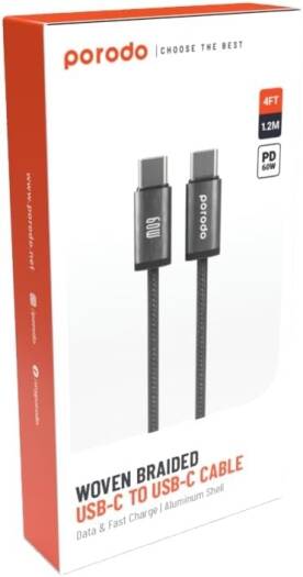 Porodo Woven 60W Type-C to Type-C Cable 1.2M – Black