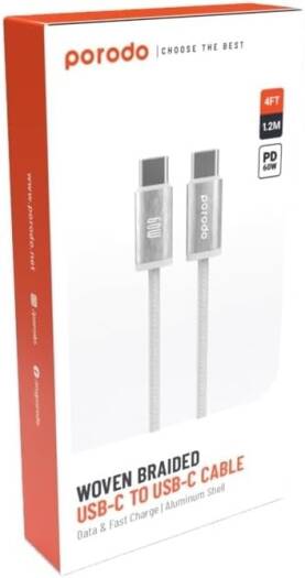 Porodo Woven 60W Type-C to Type-C Cable 1.2M Durable High Speed Data transfer 480 Mbps – White