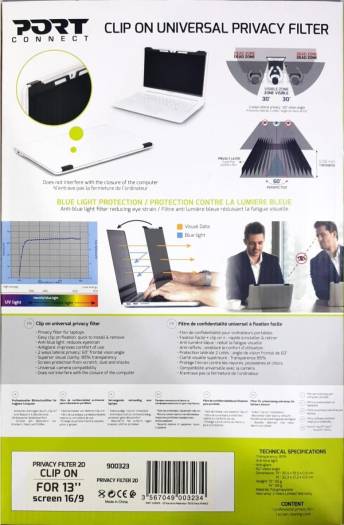 Work productively anywhere without worrying about prying eyes This easy-to-install privacy filter allows you to avoid prying eyes thanks to its 2 side protection angles and a 60° front view angle. Besides, enjoy superior visual clarity with 85% transparency. Thanks to its “clip-on” fastening system, it only takes a few seconds to install and remove it. Its slim design does not interfere with the closing of the computer and has universal compatibility with the camera.