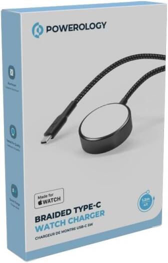 The Powerology Braided Type-C Watch Charger is a stylish, durable, and efficient solution for keeping your smartwatch charged and ready to go. This charger, designed with convenience and practicality in mind, comes in a sleek black color and is equipped with several features that make it an excellent choice for both everyday use and travel. It features a braided cable, which is not only aesthetically pleasing but also incredibly durable. Braided cables are known for their resistance to wear and tear, making them less likely to fray or break compared to regular plastic-coated cables. The charger comes with a USB Type-C connector. With a power output of 5 watts, this watch charger is designed to deliver a safe and consistent charge to your smartwatch. It is perfectly suited for smartwatches, ensuring that they receive the optimal amount of power without overheating or damaging the battery. This makes it ideal for everyday use, providing a reliable charging solution that wont compromise the longevity of your watchs battery. The charger comes with a 1.2-meter cable, offering ample length for flexibility in how and where you charge your watch. Whether youre at your desk, on your nightstand, or even in your car, the extended length allows you to place your watch comfortably while it charges.One of the standout features of the Powerology Braided Type-C Watch Charger is its compatibility with all watch se