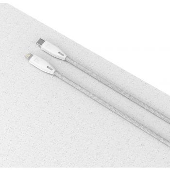 Powerology Braided USB-C to Lightning Cable Designed to Withstand up to 15000+ Bands (1.2m/4ft) – White | PCAB001-WH