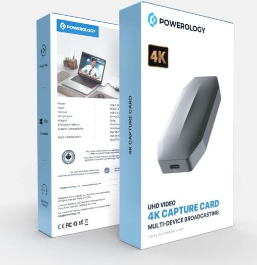 Powerology Capture Card 1C 3.2 Gen1 Input 1HDMI 1.4, support 4K/30Hz – USB-C 3.2 Gen1(4K/30Hz) – Zero Delay Capture – HDMI 1.4 | PWCC1C1HD
