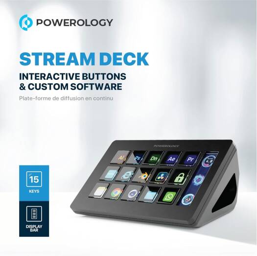 Powerology Stream Deck Interactive Buttons & Custom Software 15 Hardware Keyboard Numbers, Windows & Mac Supported OS, 800LUM Screen Luminance, 450 Screen Contrast Ratio, Display Bar