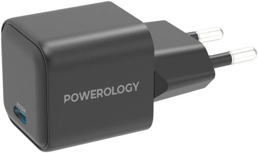 Powerology Ultra Quick GaN Charger, 35W Power Delivery, Single Type-C Port, EU Plug, Charge 0%-60% in 30 Minutes, Built-In Safeguards, Black | P35WSPCEU