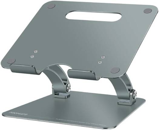 Promate Laptop Stand, Aluminium Multi-Level Adjustable Notebook Stand, Up to 17 Inches with Multi-Angle, Anti-Heat Design, Anti-Slip Pads, Grey | DeskMate-7