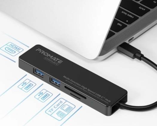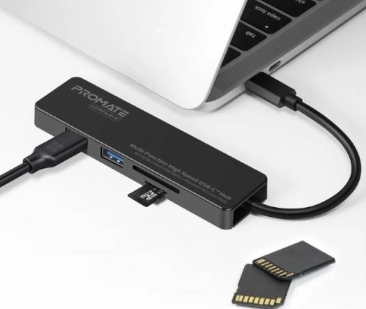 Promate Multi-Function High Speed USB-C Hub, USB ports, 4K HDMI port and a MicroSD/SD card slot | LinkHub-C