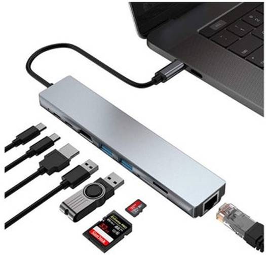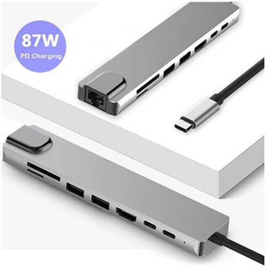 PROTECT 8 in 1 USB Hub, Multiport Adapter with 4K HDMI and USB 3.0 Ports, 5Gbps Data Transfer Speed, Up to 87W PD Fast Charging, Silver | USBH8-1