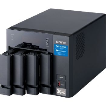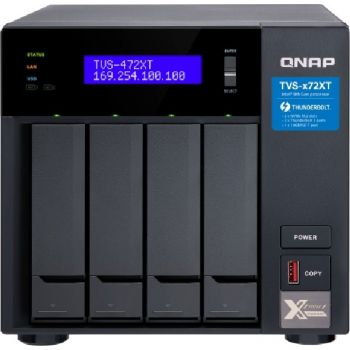 Powered by an 8th generation Intel® Pentium® Gold / Intel® Core™ i3/i5 processor, the high-performance TVS-472XT NAS features both 10GBASE-T and Thunderbolt™ 3 high-bandwidth connectivity for tackling heavy workloads and smoothly transferring, displaying and editing 4K videos in real-time. With M.2 SSD support and the ability to install a graphics card, the TVS-472XT provides the ability to boost performance and create a scalable working environment for collaboration and high-speed file sharing. The TVS-472XT is driven by high-quality hardware that delivers optimum performance, comprehensive multimedia features, expandable storage capacity, and numerous other NAS functionalities to inspire greater creativity and accomplishments! Fast and flexible Thunderbolt™ 3 and 10GBASE-T connectivity The TVS-472XT provides options with the powerful 8th generation Intel® Pentium® Gold processor with 4 GB dual-channel DDR4 memory (upgradable to 64 GB), and Intel® Core™ i3/i5 processor with 4 GB dual-channel DDR4 memory (upgradable to 64 GB). It provides two Gigabit and one 5-speed 10GBASE-T port (10G/5G/2.5G/1G/100M), supports SATA 6Gb/s drives, and features AES-NI