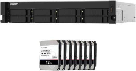 High-Performance Rackmount NAS and HDD Bundle This bundle combines the power of the QNAP 8-Bay AL324 Quad-core Rackmount NAS with the storage capacity and reliability of the WD 12 TB Ultrastar DC HC520 SATA HDD. Ideal for businesses and data-intensive applications, this combination provides ample storage space, excellent data transfer rates, and advanced features for enhanced data management and security. QNAP 8-Bay AL324 Quad-core Rackmount NAS Quad-Core Processor: Powered by a 1.7 GHz quad-core AL324 processor, this NAS offers reliable and efficient performance. 8-Bay Rackmount Design: Supports up to eight hard drives for substantial storage capacity. Redundant Power Supply: Equipped with a 250W redundant power supply for enhanced reliability and minimal downtime. Memory Expandability: Comes with 4GB DDR4 UDIMM RAM (upgradable to a maximum of 16GB) for efficient multitasking. Network Connectivity: Features 2x 10GbE SFP+ ports and 2x 2.5GbE ports for high-sp