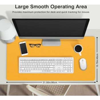 Raja’sLeather Desk Pad, Office Desk Mat, Premium Quality, Non-Slip PU Leather Desk Blotter,Laptop mat,Waterproof Desk pads Writing Mat for Office and Home (Blue & Yellow 40 x 80cm)