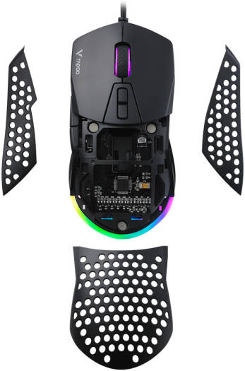 V360 • Ergonomic design • Adjustable 200 – 6,200 DPI gaming sensor • 7 programmable buttons • 220 inch/s tracking speed • Up to 30G acceleration • 1000Hz USB polling rate • Multiple backlight modes with 16 million colors • Onboard memory