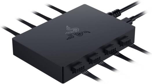 Razer PWM PC Fan Controller, DC To SATA Type, 530mm Length, No aRGB Control, 4-Pin x 8 PWM Headers, Internal USB 2.0 9-Pin, Black | RZ34-02140700-R3M1