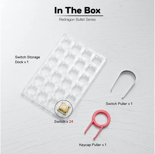 Redragon Custom Switch – A113 Bullet series customizable mechanical keyboard switches kit is exclusively customized from the original MX mechanical switches, dedicated for keyboard mod enthusiasts, compatible for all hot-swappable keyboards includes the Redragon 2021 keyboards (K530, K630, K617 ONLY) & upcoming 2022 new Redragon hot-swap series. Parrot Tactile (Equivalent Blue) – Much reliable, crisp and clear to traditional blue tactile switches, Bullet-B Parrot Tactile mechanical switch delivers an upgraded unique tactile feel and clearer clicky audible feedback based on MX Blue. Epic Durable Quality – There are 24 switches in the box, with extra keycap and switch puller, every single switch has a 50 million click times durability. Extremely wear-resistant internal components with IP40 dust-