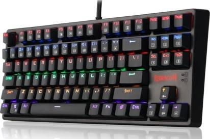 Product Description: MECHANICAL GAMING KEYBOARD – BLACK VERSION; 87 Keys Small Compact Mechanical Gamimg Keyboard with Custom Mechanical Switches (Cherry Blue Switch equivalent). Designed for longevity with greater durability and responsiveness. The Mechanical Keyboard Keys offer crisp and precise tactile feedback for ultimate typing and gaming performance. The switches are of the highest quality, tested for 50 million keystrokes RAINBOW LED BACKLIT MECHANICAL USB GAMING KEYBOARD; 8 different Game Modes, 2 user defined Game Modes, 6 colors, multiple brightness levels, adjustable breathing speed and breathing mode. The Illuminated keyboard has Double-shot injection molded keycaps offering crystal clear uniform backlighting and lettering that doesn't scratch off ERGONOMIC PC GAMING KEYBOARD; The keyboard features a Compact Ergonomic Design and a High Quality Durable Metal-ABS Construction with Plate-mounted mechanical keys and switches that stand up even during the most testing marathon gaming sessions like SIMS league of legends, steam, Fortnite, PUGB, Overwatch, Call of Duty and other FPS Games A NTI GHOSTING GAMING KEYBOARD FOR PC; ALL 87 mechanical keys are conflict free (n