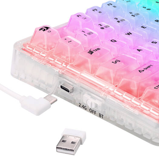 Redragon Elf Pro K649 Gasket 78% 82-Keys Mechanical Gaming Keyboard, Transparent Linear Switch, Hot-Swappable, USB-C Wired, BT 3.0/5.0 & 2.4Ghz Connectivity, 3000mAh Battery, White | K649CT-RGB-PRO