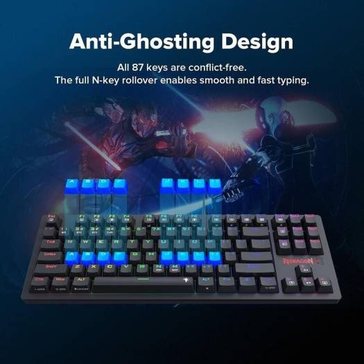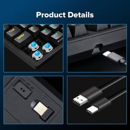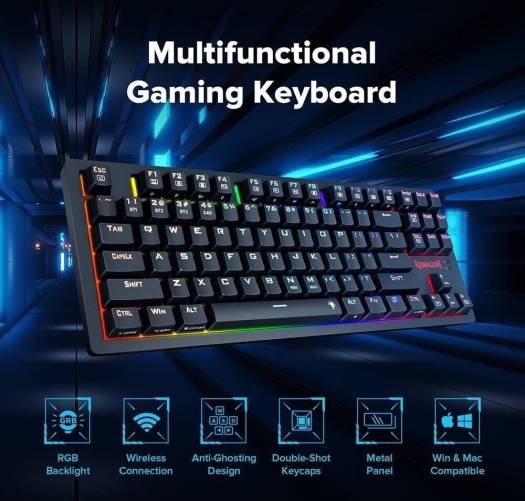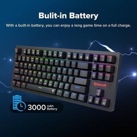 Redragon K598P Karma 80% Mechanical Keyboard, Blue Mechanical Switch, 3 Modes Connectivity, Wired/2.4GHz/BT, Anti-Ghosting, N-Key Rollover, 300mAh Bat