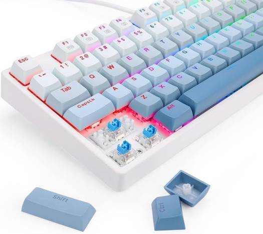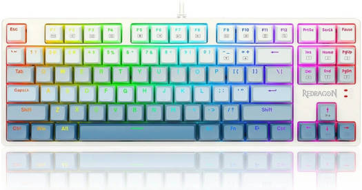 REDRAGON K645W Wired RGB CASS USB Mechanical Gaming Keyboard, Blue Switch DIY LED Backlit 87 Keys, Anti Ghosting, Splash-proof, Detachable Type C Cable, White | K645W-GB-RGB