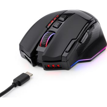 Redragon M801P Sniper Pro Wireless & Wired Gaming Mouse, Optical Sensor 16000 DPI, Built in Li-ion Battery 1000 mAh, 12 Buttons, 40G Acceleration, Black | Sniper Pro M801P-RGB