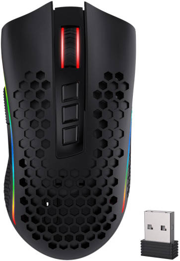 Redragon M808-KS Storm Pro Dual Mode RGB Gaming Mouse, Wired & Wireless Connectivity, Honeycomb Shell, Pixart 3335 Pro Sensor, Up to 16000 DPI, 2.4GHz & USB-C Cable Interface, Black | M808-KS