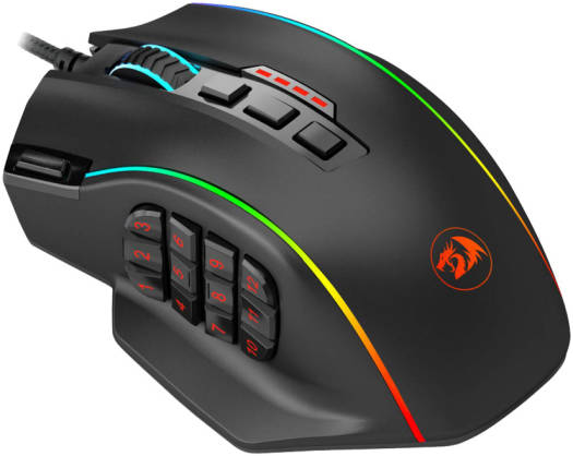 Redragon M901 Wired Gaming Mouse, 12400 DPI High-Precision Sensor, RGB Backlighting, MMO 20 Programmable Buttons With Weight Tuning Set, For Windows Pc Computer, Black | M901-K-2