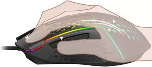 Lightweight 55gram Wired PC Gaming Mouse; The Honeycomb shell is engineered to decrease weight, increase comfort, and boost performance, translating to longer, more precise gameplay without fatigue RGB Backlit Programmable Gaming Mouse with 6 programmable Buttons, 5 different user modes and multiple backlighting effects Ergonomic Gamer Mouse with up to 12400 DPI and 30G acceleration. The ergonomic shape fits naturally in your hand. The Gaming Grade High-Precision Sensor delivers Pinpoint Accuracy and extreme responsiveness during PC Gaming or Computer editing PC Gaming Mouse features like button functionality, lighting effects, user profiles, and DPI settings can be easily adjusted via additional software that can be downloaded from Redragon USA
