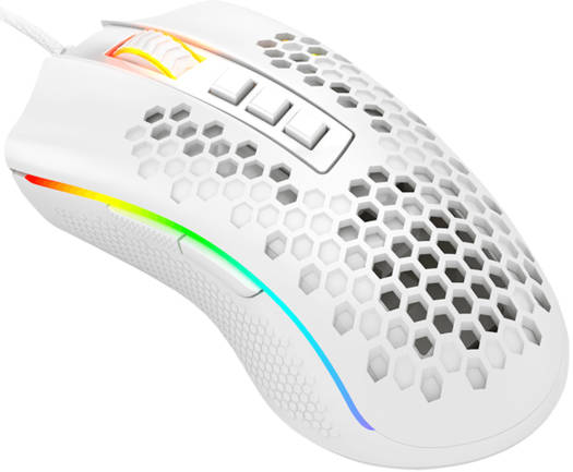 Redragon M988W Storm Elite Mouse, Pixart 3389 Sensor, Up to 16000 DPI, 8 Programmable Buttons, Wired Connectivity, 1.8m Mesh, Superflex, Minimal Drag Cable, White | M988W-RGB