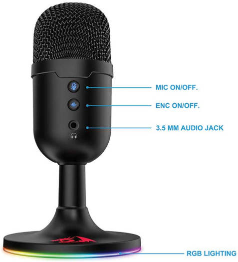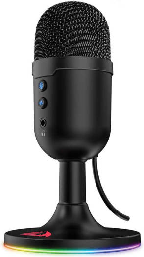 Redragon Puslar Streaming Microphone, Omni-Directional (360° Radio Reception), Volume Mute & Noise Cancelling Control, USB Plug Cable, 1.8m Cable Length, Black | GM303