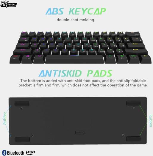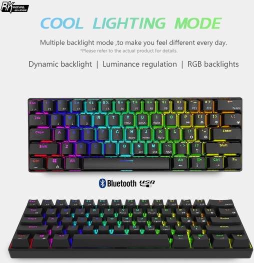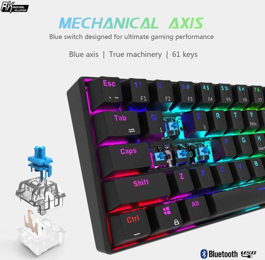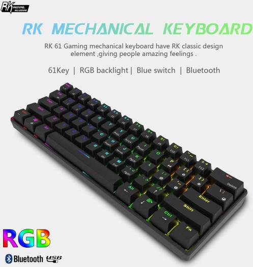 Rk Royal Kludge 61 Lighting Led Backlight Mechanical Gaming Keyboard, USB Cable/Wireless Bluetooth 3.0RGB, Blue Switch, Black | Rk61-01