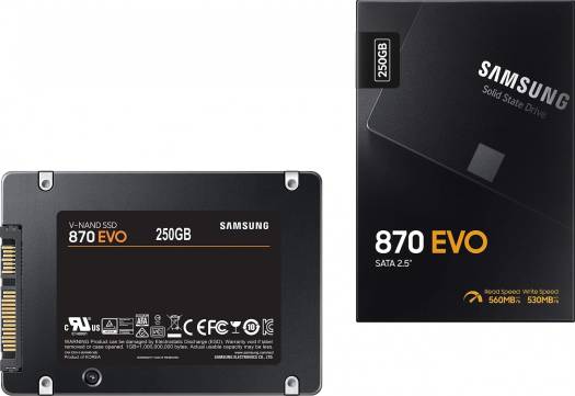 Samsung 870 EVO 250GB SATA 2.5″ SATA III Internal SSD, Up to 560 MB/s Seq Read & 530 MB/s Seq Write Speed, V-NAND Technology, 512MB LPDDR4 Cache, MKX Controller, 1.5M Hrs. MTBF, Black | MZ-77E250BW