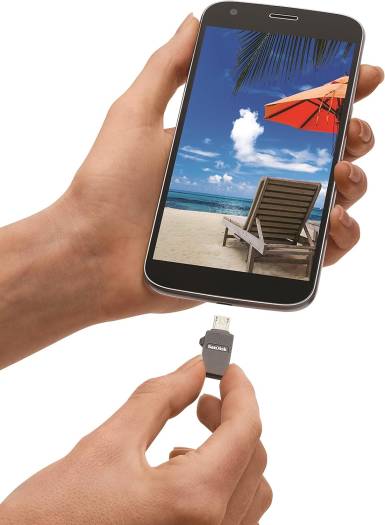 Product description Move files between OTG-enabled AndroidTM smartphones and tablets1 and PC and Mac computers. With a Micro-USB connector on one end, and a USB 2.0 connector on the other, the drive lets you move content easily between all your devices. This flash drive for your Android devices includes the SanDisk Memory Zone app for automatic camera roll backup and easy file and media management. Free up space on your OTG-enabled Android smartphone or tablet With a micro-USB connector and a USB 2.0 connector, you can move content easily to make space for more pictures and videos. <div class="apm-heromodule-textright apm