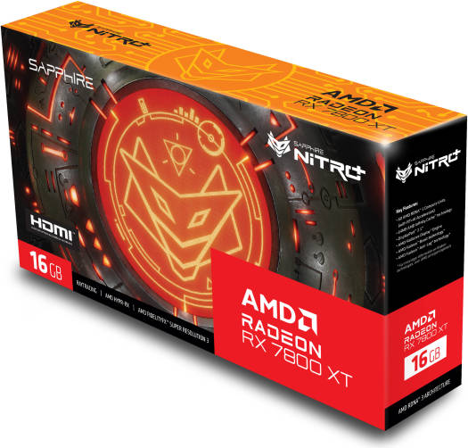 NITRO+ AMD Radeon™ RX 7800 XT 16GB GPU: Boost Clock: Up to 2565 MHz GPU: Game Clock: Up to 2254 MHz Memory: 16GB/256 bit DDR6. 19.5 Gbps Effective Stream Processors: 3840 RDNA™ 3 Architecture Ray Accelerator: 60
