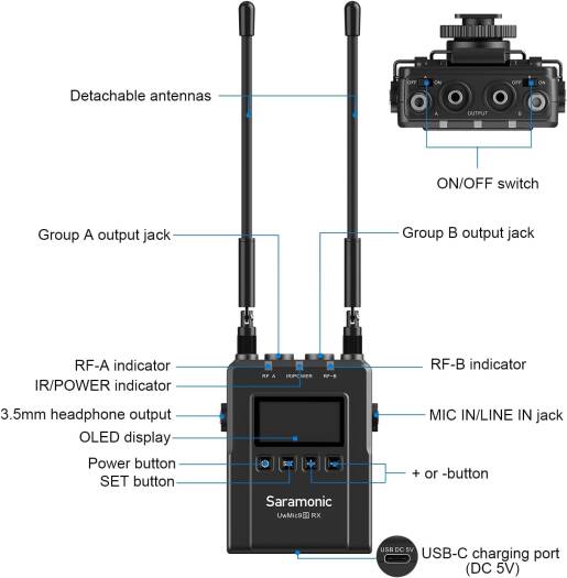 The Saramonic UwMic9S Kit 1 is a professional and powerful, advanced dual-channel, camera-mountable UHF wireless lavalier system that delivers premium, broadcast-quality sound. It enables you to use up to two transmitters with a single compact receiver by adding a 2nd transmitter (sold separately). Perfect for all types of cameras, recorders, mixers and interfaces with either 3. 5mm or XLR microphone inputs. Ideal for capturing interviews, film dialog, broadcast TV, news gathering, vlogging, YouTube videos and so much more. Every component features sturdy, yet lightweight metal construction and the entire system is neatly packaged in a watertight and impact-proof hardcase. The UwMic9S delivers premium, professional sound quality and unrivaled flexibility in a remarkably priced package. Next Generation of the UwMic9 with Remarkable New Professional Features The UwMic9S Kit 1 is the next gen of the dual-channel wireless system that changed the industry. Upgraded in every way, it combines the ease of use, industry leading flexibility and remarkable pricing of the original system with a newly engineered design, high-quality lavalier, li-ion power with extended battery life, external mic/line input on the receiver, 360 positionable whip antennas, higher quality sound, included hardcase, 34% lighter system weight and an impressive list of many other new pro features that drastically set it far apart from the original system and any competitor in its class. DK3 Premium Lavaliers