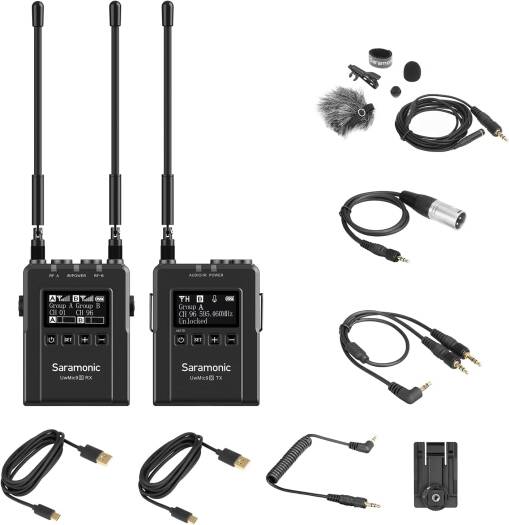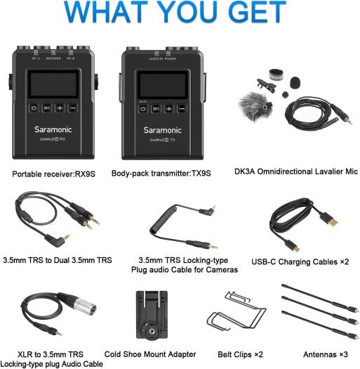 Saramonic Advanced Wireless UHF Lavalier System with Dual-Channel Camera-Mount Receiver, Premium DK3A Lavalier, Li-Ion Power, Hard Case & More (UwMic9S Kit 1),UWMIC9S-KIT1