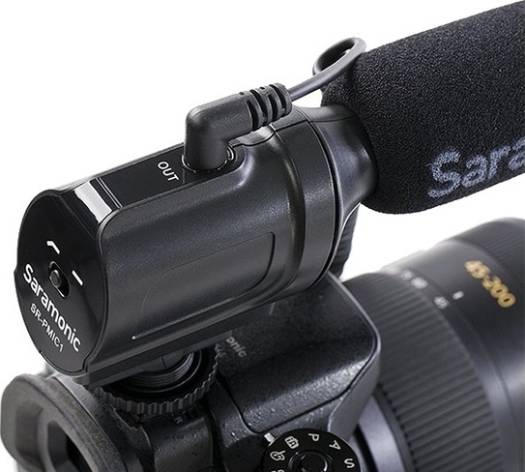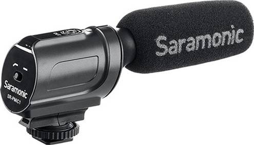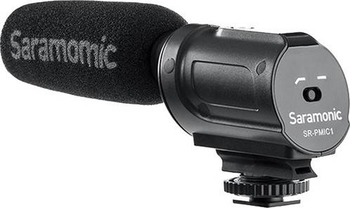 The Saramonic SR-PMIC1 is a lightweight super-cardioid condenser microphone that records high-quality audio to your DSLR cameras and camcorders. The SR-PMIC1 allows you to adjust the low-cut filter (100Hz) to increase the intelligibility of dialogue. The cold shoe mount allows you to mount the microphone to a camera or audio mixer. Features: Super-Cardioid Unidirectional Microphone Battery-Free Operation Switchable Low-Cut Filter at 100 Hz Integrated Rubber Shock Foam windscreen included