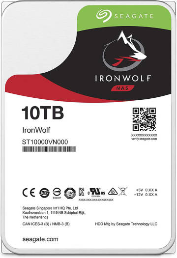Seagate 10TB IronWolf SATA III 3.5″ Internal NAS HDD, Up to 210 MB/s Data Transfer Rate, 7200 RPM, 256MB Cache, 100,0000 Hours MTBF, 180TB/Year Workload Rate, 600000 Load/Unload Cycles | ST10000VN000