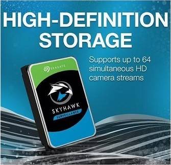 Industry’s first surveillance-optimized hard drive platform improving video streaming and data integrity 4TB of storage capacity supports higher-resolution cameras and up to 16 drivesper system and 32 cameras per drive Reliably performs in multi-drive systems with RAID support from RV sensors 64MB Cache with SATA 6Gb/s interface Never miss a frame with quick time-to-ready. 24×7 operational capabilities Idle3 spin control features enable power-on in standby mode or drive spin-downto conserve power and improve reliability during archival periods. ImagePerfect firmware designed to ensure seamless video footage capture in 24×7 surveillance workloads that record video from up to 64 HD cameras Best fit applications for network video recorders (NVR) and surveillance DVRs SkyHawk Health Management actively helps protect surveillance storage. Included is RAID RapidRebuild, which provides 3x faster volume rebuilds over traditional RAID rebuilds. Includes 3-year Rescue Data Recover Services plan help protect important video data with Seagate’s in-house data recovery services 1M hou