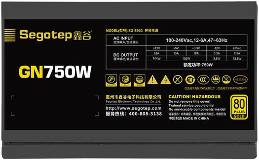 Segotep GN750W Non-Modular Power Supply, 750W Power Output, 80 Plus Gold Efficiency, 120mm Hydraulic Bearing Fan, AI Cooler Smart Temperature Control, Active PFC, Black | GN750W 1.3